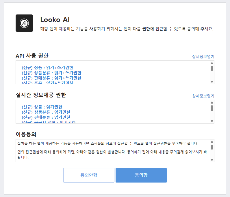 Looko-AI 앱 권한 접근 팝업이 표시되면, 동의함을 ****선택해 주세요.